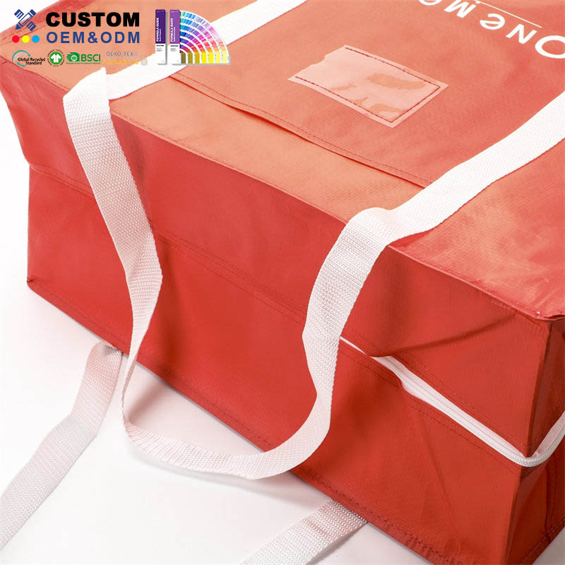 กระเป๋าซิปใบนี้ผลิตจากวัสดุทอ PP ระดับพรีเมียม ผสมผสานความทนทานเข้ากับการใช้งาน สีแดงและด้ามจับสายรัด PP แบบกว้างไม่เพียงแต่เสริมความสวยงาม แต่ยังรับประกันประสิทธิภาพที่เชื่อถือได้สำหรับความต้องการในการพกพาที่หลากหลาย ที่จับได้รับการออกแบบอย่างชาญฉลาดเพื่อพันรอบตัวกระเป๋า ช่วยเสริมความแข็งแรงเป็นพิเศษ และเหมาะสำหรับการบรรทุกของที่หนักกว่า